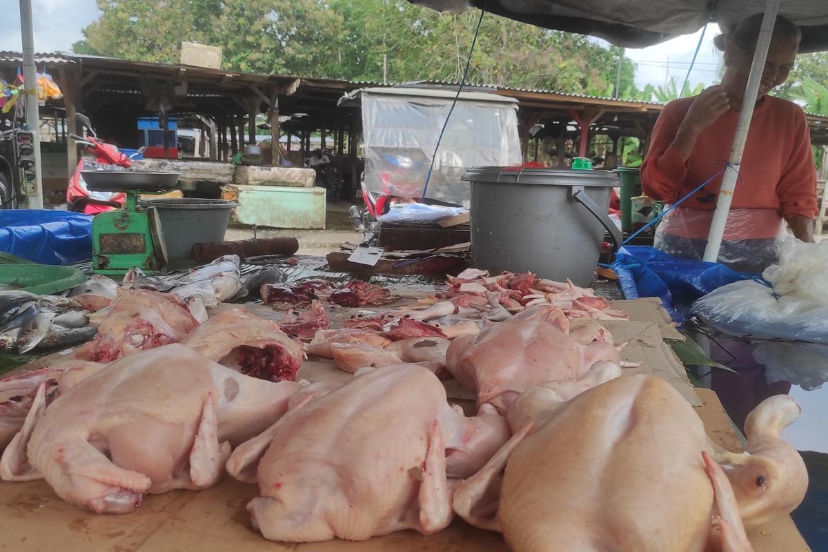 Harga terkini bahan kebutuhan pokok di Pasar Pulau Mas Tebing Tinggi Kabupaten Empat Lawang, daging ayam masih bertahan Rp 37 ribu.