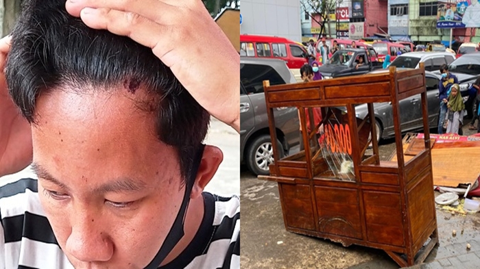 Ridho Satria (24), pedagang bakso di bawah Jembatan Ampera yang dikeroyok preman saat berjualan, Selasa lalu berharap Polisi Tangkap Pelaku
