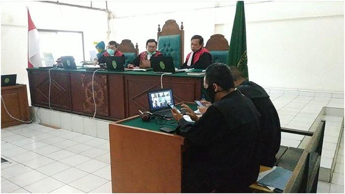 Meski begitu, dari layar monitor terlihat jelas bahwa terdakwa tak kuasa menahan raut kekecewaan atas tuntutan yang diterimanya