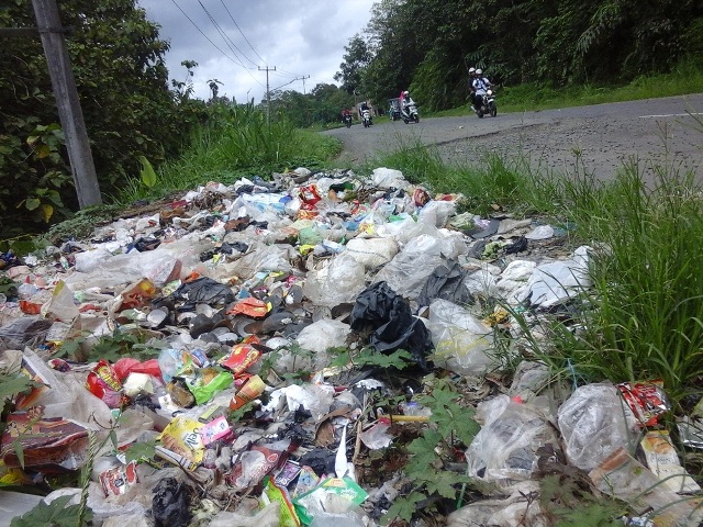 Kali ini gunungan sampah yang di badan jalan Lintas Tengah(Jalinteng) Sumatera pasar Musi Tebingtinggi.