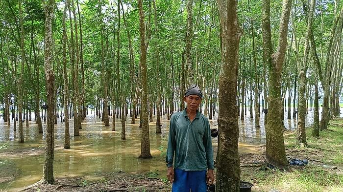 Tidak hanya merendam permukiman, luapan banjir sungai Lempuing OKI juga merendam perkebunan milik masyarakat.