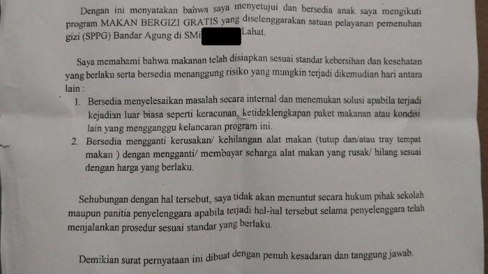Viral Surat Pernyataan Program MBG di SMP Lahat, Wali Murid Diminta Tanggung Resiko Jika Ada Masalah