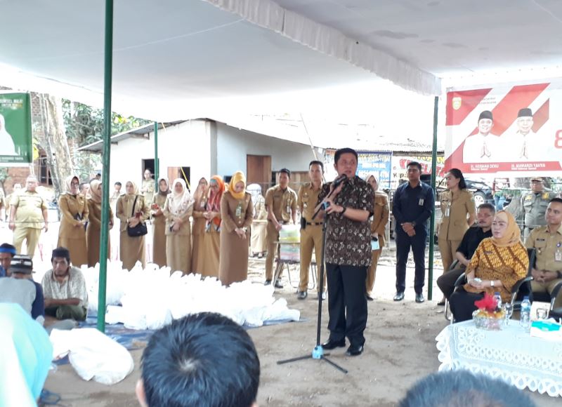 Pemerintah Kecamatan Bayung Lencir Kabupaten Musi Banyuasin (Muba) membagikan daging hewan kurban menggunakan daun pisang, Minggu (11/8/19)